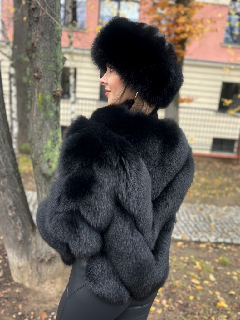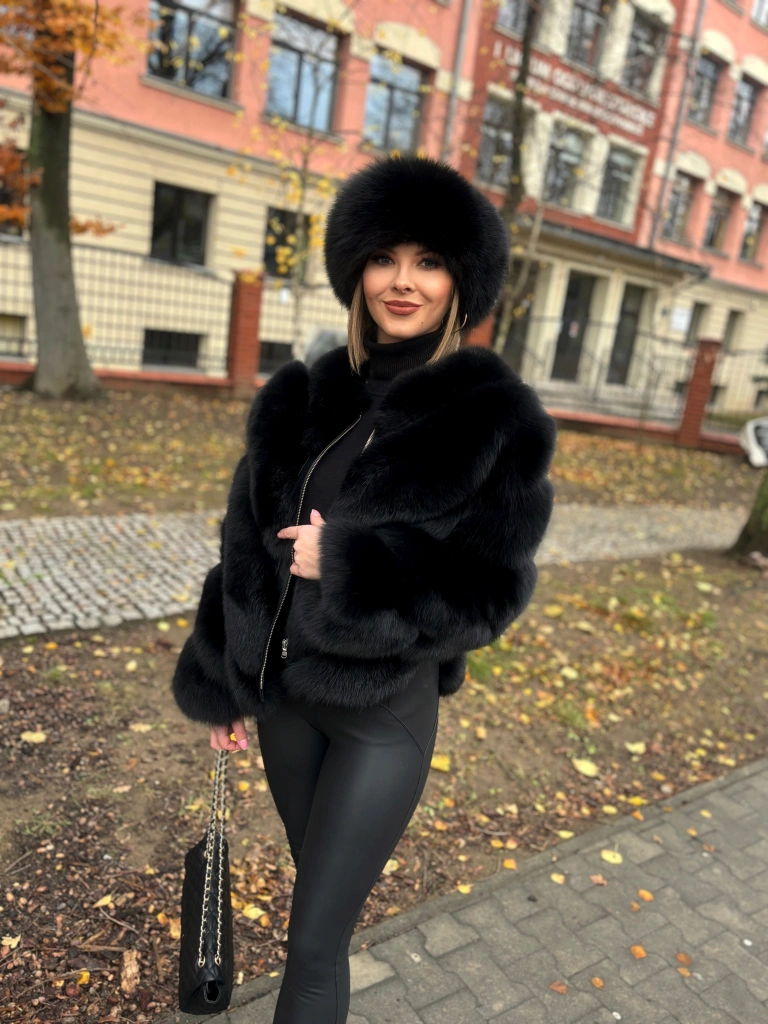 Czarne futro z lisa fińskiego i skóry jagnięcej