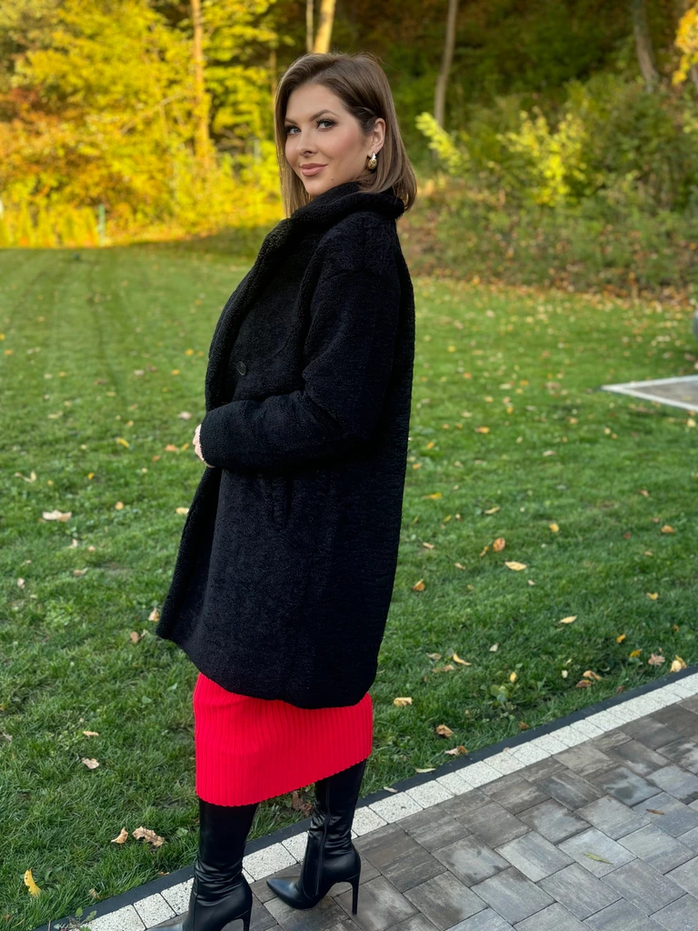 Modny płaszcz baranek czarny to must-have w kobiecej garderobie. Wykonany z miękkiego, przyjemnego w dotyku materiału typu teddy, zapewnia ciepło i komfort w chłodniejsze dni. Ten elegancki płaszcz damski świetnie sprawdzi się zarówno w codziennych, jak i bardziej stylowych zestawach.