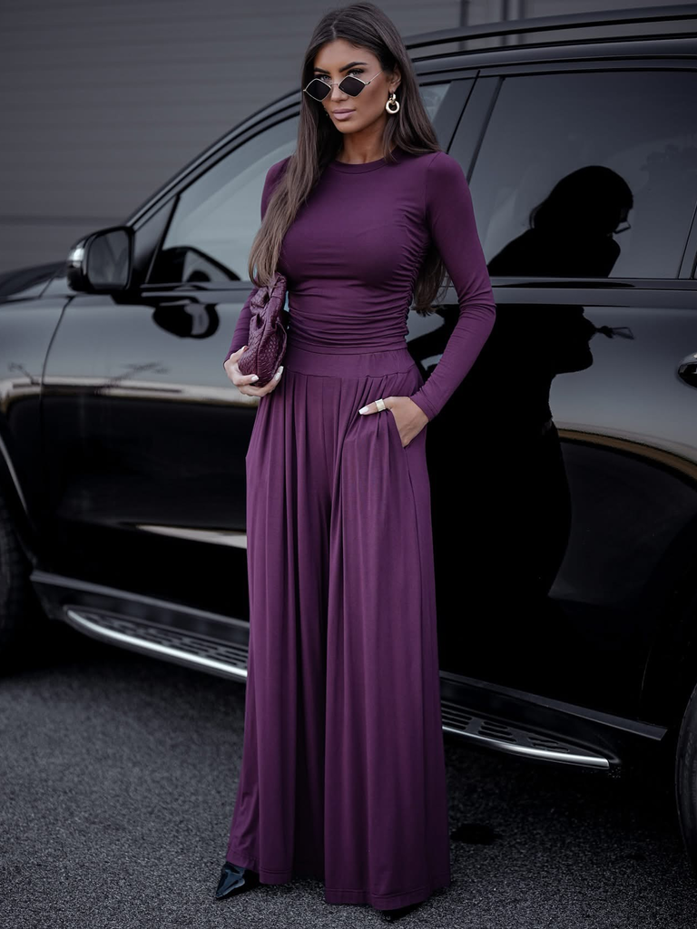 Ten wyjątkowy komplet z miękkiej i przewiewnej wiskozy to połączenie wygody i elegancji. Składa się z dopasowanej bluzki z długim rękawem i szerokich spodni z wysokim stanem, które pięknie wydłużają sylwetkę. Idealny wybór zarówno na co dzień, jak i na wieczorne wyjścia – wystarczy dobrać ulubione dodatki, aby stworzyć stylizację na każdą okazję.