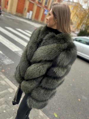 • Zielone futro z lisa fińskiego i skóry jagnięcej